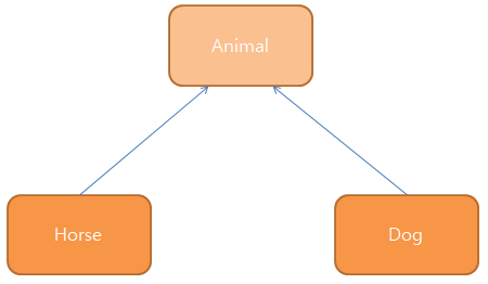 - 예시. 동물. anmimal, 동물클래스를 상속한 강아지, 사람, 물고기 클래스가 있음 동물 클래스의 본다라는 기능→ 세개의 클래스가 그대로 물려받을 수 잇음 .