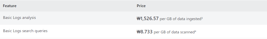 | 데이터 형식 | 전체 | 사용자 지정로그, 컨테이너 로그, AppTraces 및 기타 데이터 형식 |