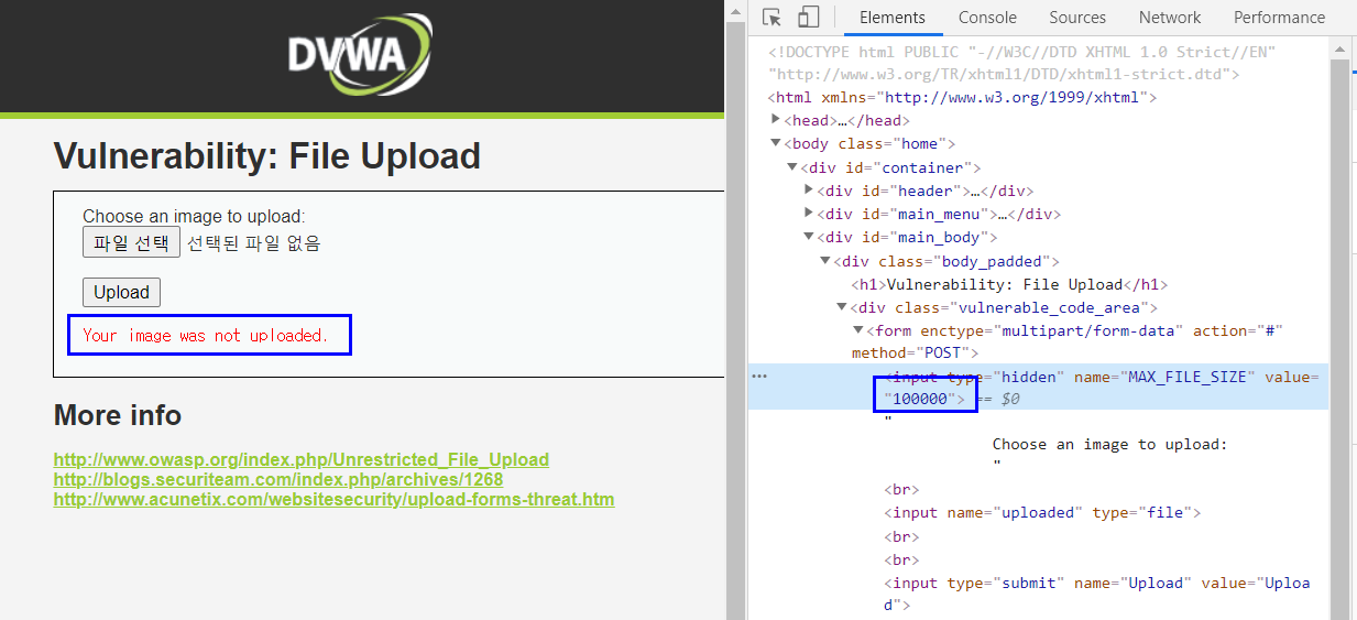* 웹쉘 업로드시에 파일 크기때문에 업로드 제한이 되는 것을 확인.