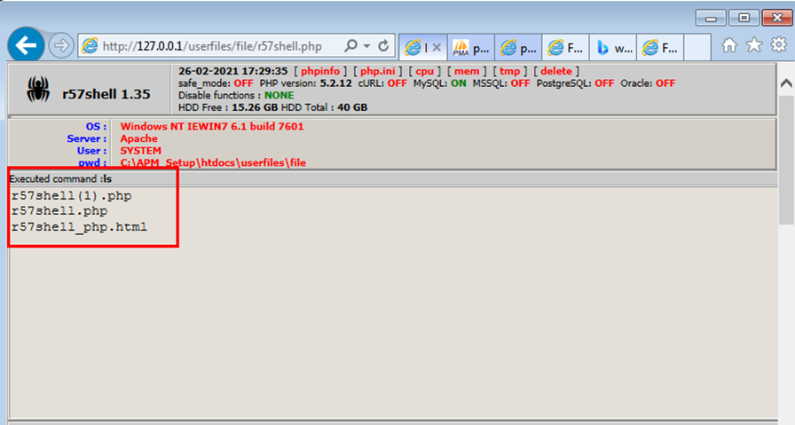 10. 인터넷에서 웹쉘 샘플파일을 수집하고, 윈도우 보안기능 해제, 업로드시에 파일명 변경하여 업로드