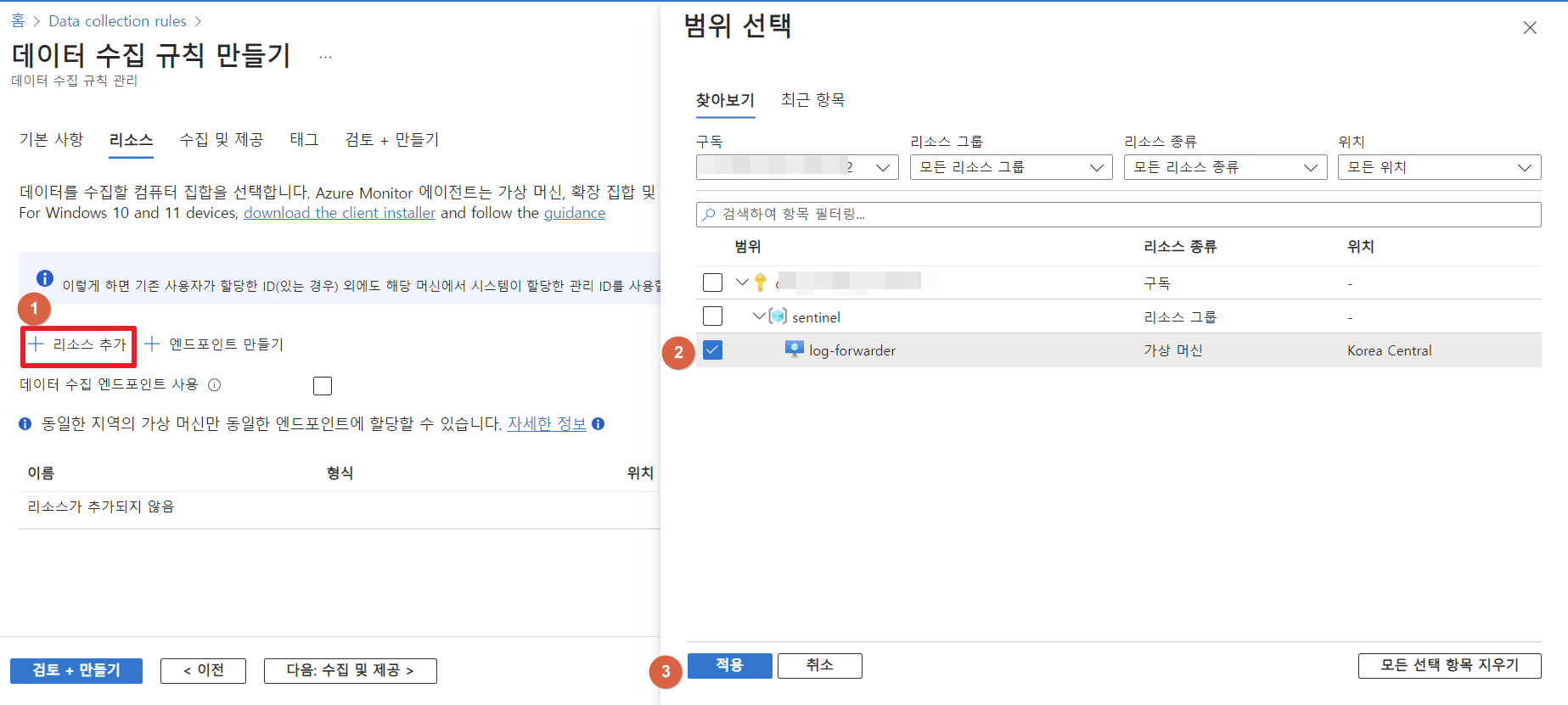 이 구성은, 전제조건이 log forwarder서버가 Azure VM일 경우 입니다.