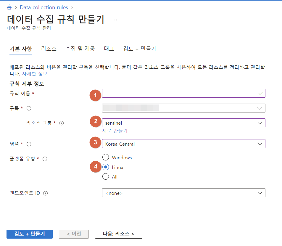 DCR (데이터 수집 규칙) 을 생성합니다.