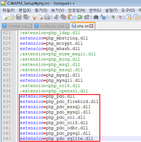 6. php.ini에 635번부터 643번 줄까지 주석 제거
