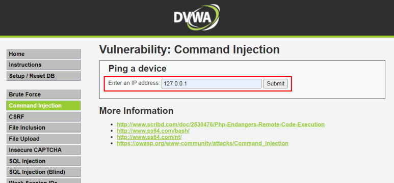 커멘드 인젝션에 아이피를 입력했는데? Ping에 대한 결과가 실행됩니다.