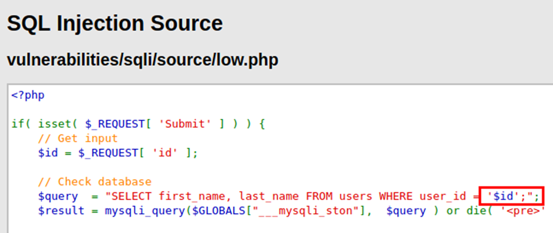 전체 사용자 확인을 위해, ' or'1'='1 "을 통해 우회함. => user_id가 공란(' ')이거나, 1인 사용자의 first_name과 surname이 출력됨. => 사용자의 아이디가 출력