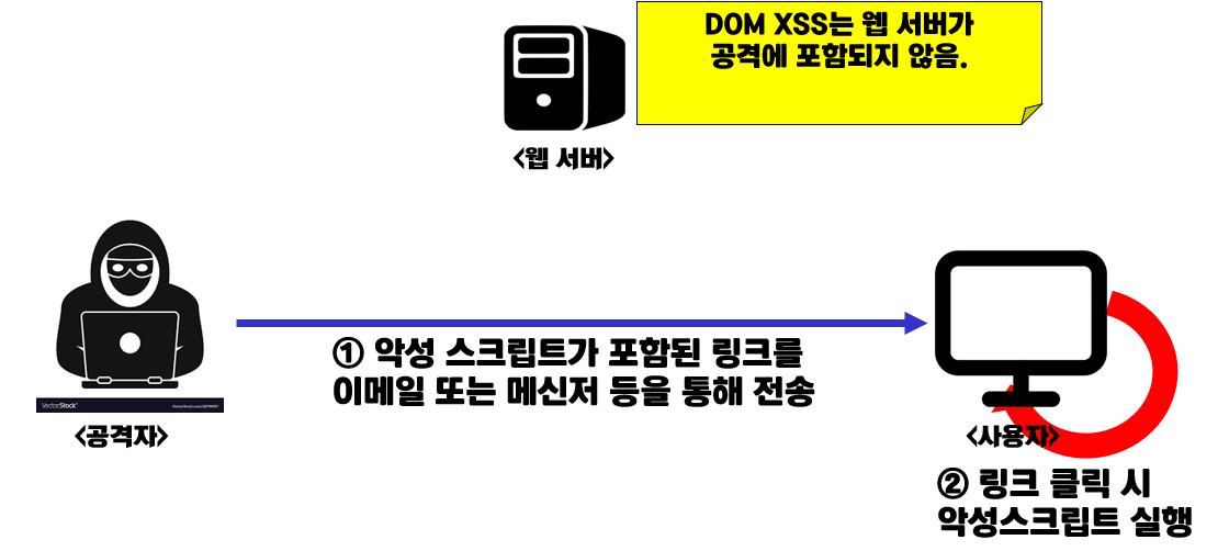 페이지 자체는 변하지 않으나, 페이지에 포함되어 있는 브라우저 측 코드가 DOM환경에서 악성코드로 실행됨.