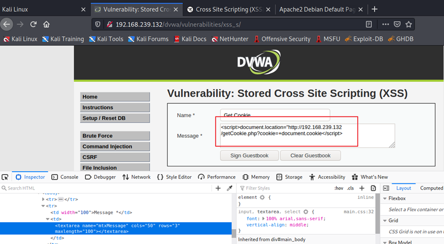 그러나 여기에 스크립트 삽입을 방지하려고 dvwa에서 maxlength를 50으로 설정해 두었습니다.[개발자도구 F12활용]