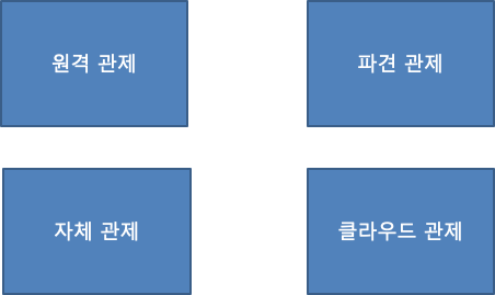 2. 파견 관제 : 전문인력만 파견 받아 관제 업무 수행.(가장 비율이 높음), 보안인력충원하려고 상시모집을 많이함.
